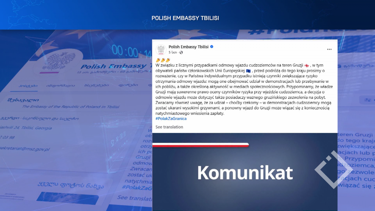 პოლონეთისა და საფრანგეთის საელჩოების მოწოდება საკუთარი ქვეყნების მოქალაქეებს. დიპლომატიური უწყებები მათ საქართველოში შემოსვლასთან დაკავშირებულ რისკებზე აფრთხილებს და რამდენიმე ფაქტორის გათვალისწინებას...