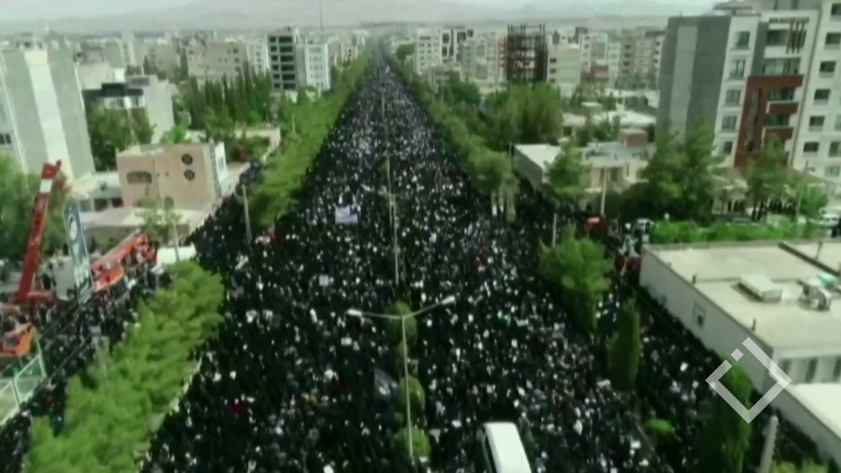 თეირანში პრეზიდენტ ებრაჰიმ რაისსა და მის თანმხლებ პირებთან გამოსამშვიდობებლად, რომლებიც აზერბაიჯანის საზღვართან ვერტმფრენის ჩამოვარდნისას დაიღუპნენ, უამრავი ადამიანი იკრიბება. პრეზიდენტის ცხედარი...