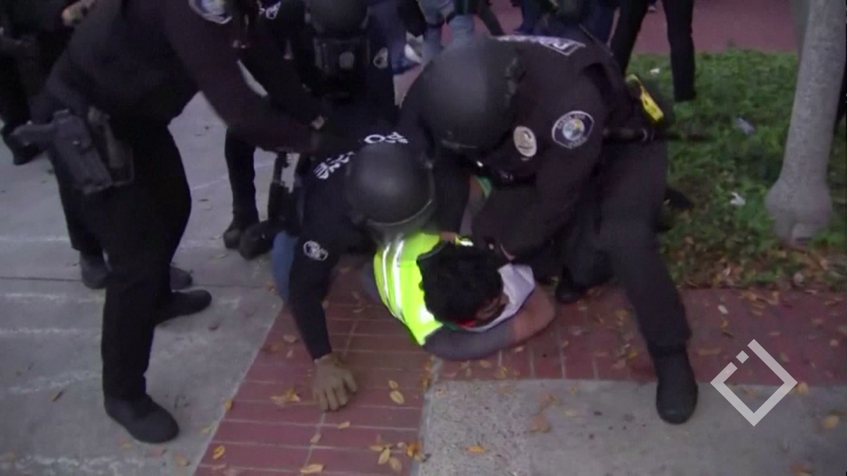 კალიფორნიის ირვინის უნივერსიტეტში პოლიციამ პროპალესტინელი დემონსტრანტები დააკავა. შემთხვევის ადგილზე გადაღებულ ვიდეოკადრებზე ასახულია დაკავებების მომენტი. პოლიციის ათამდე განყოფილების ოფიცერი შეიკრიბა ...