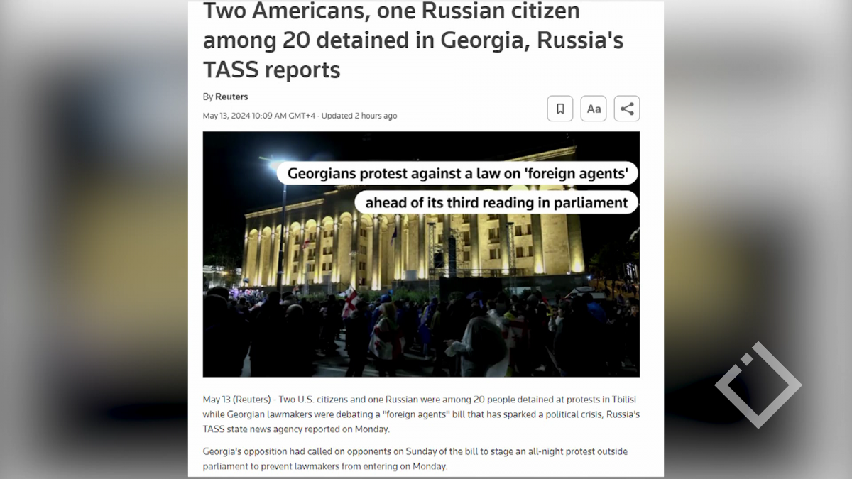 აშშ-ის ორი და რუსეთის ერთი მოქალაქეა იმ 20 პირს შორის, რომლებიც თბილისში საპროტესტო აქციაზე დააკავეს - წერს საინფორმაციო სააგენტო ''როიტერსი''...