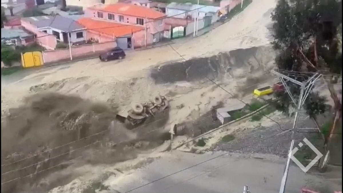 ძლიერი წვიმის შედეგად ბოლივიის დედაქალაქში მდინარე ადიდდა. ნიაღვარმა მდინარე არუნტაიას ნაპირები მოშალა და ყველაფერი რაც გზად შეხვდა მძიმე ტექნიკის ჩათვლით...