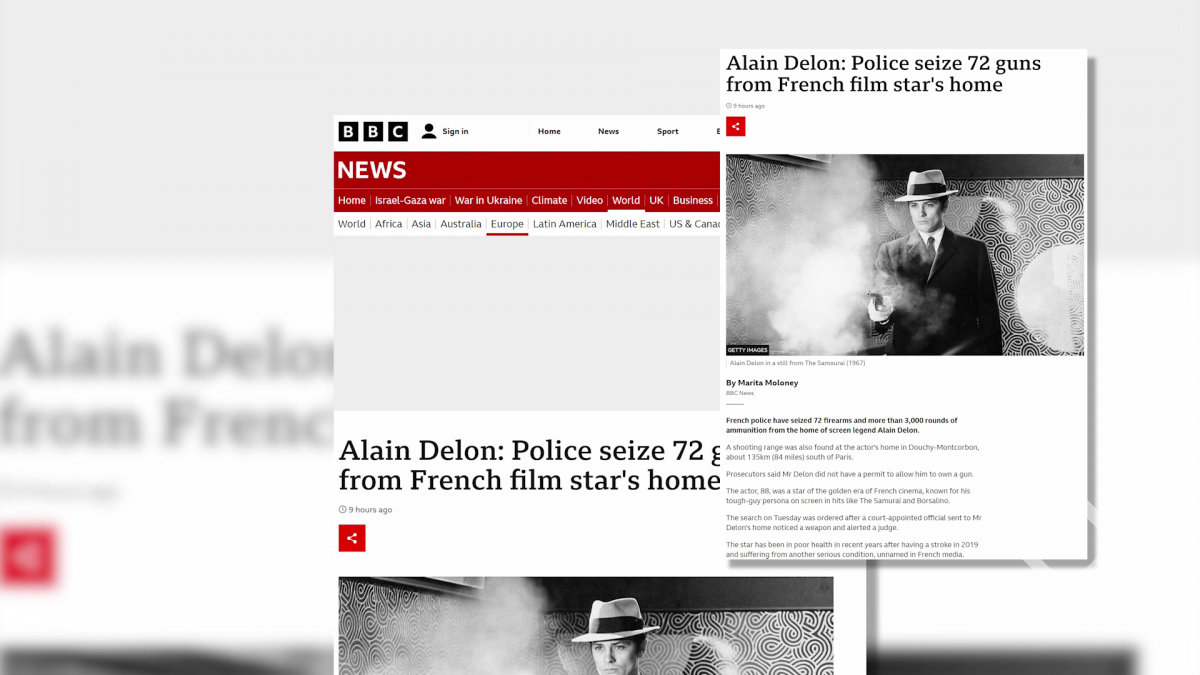 ფრანგი მსახიობის ალენ დელონის საცხოვრებელი სახლიდან სამართალდამცველებმა 72 ერთეული ცეცხლსასროლი იარაღი და 3 000-ზე მეტი ტყვია ამოიღეს. ინფორმაციას „ბიბისი“ ავრცელებს....