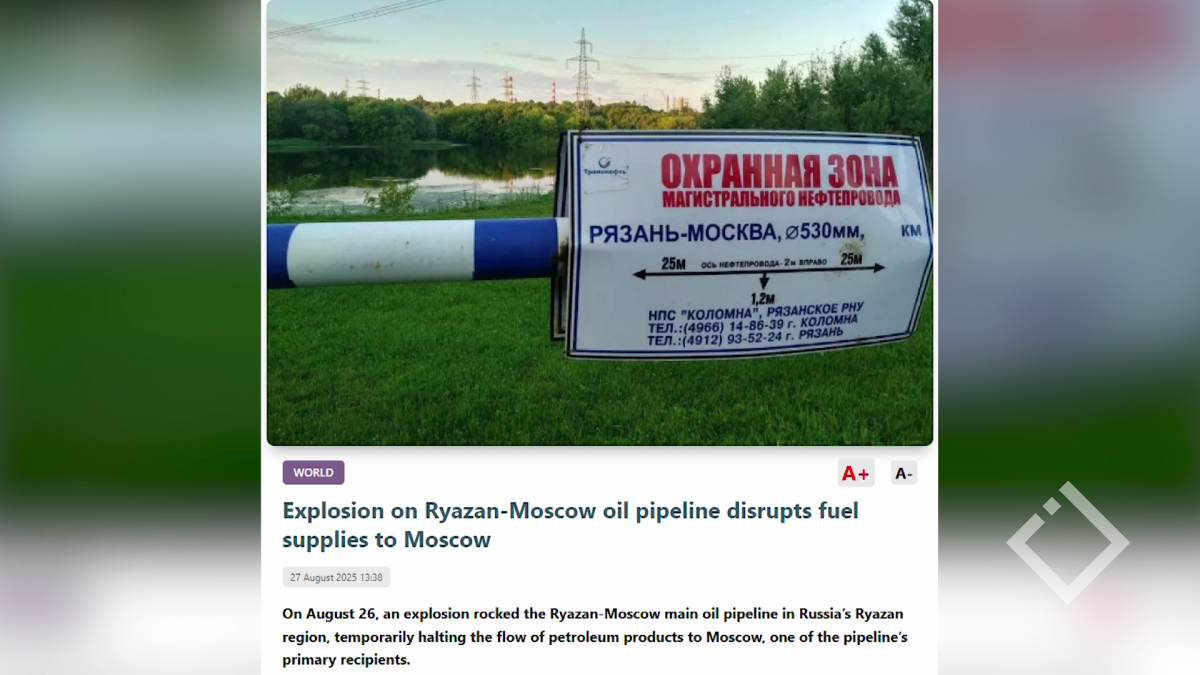 რუსეთში, „რიაზან-მოსკოვის“ ნავთობსადენი აფეთქდა და რუსეთის დედაქალაქში ნავთობპროდუქტების ტრანსპორტირება განუსაზღვრელი ვადით შეჩერებულია, - ინფორმაციას უკრაინული მედია ავრცელებს. რიაზანის ოლქში მდებარე...