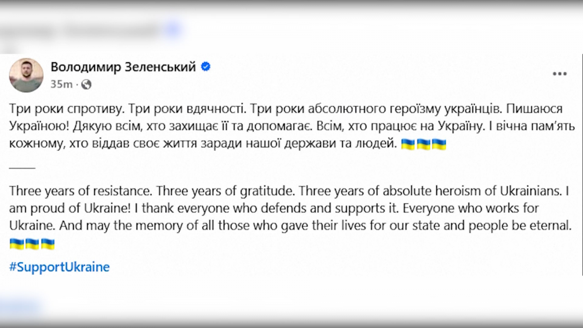 უკრაინის პრეზიდენტ ვოლოდიმირ ზელენსკის თანამემამულეების ერთიანობისა და გამბედაობის, ასევე შეერთებული შტატების პრაგმატიზმის იმედი აქვს. "ჩვენ მტკიცედ ვდგავართ საკუთარ ორ ფეხზე. ...