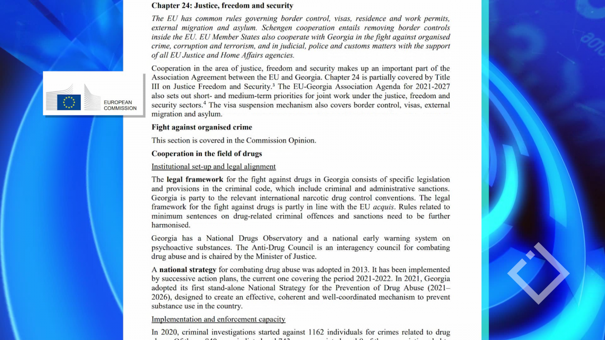ევროკომისიის მორიგი შეფასების ანგარიში. მოხსენებით ვიგებთ, რომ საქართველოს აქვს მომზადების გარკვეული დონე მართლმსაჯულების, თავისუფლებისა და უსაფრთხოების სფეროში კანონმდებლობის განსახორციელებლად. სოციალური...