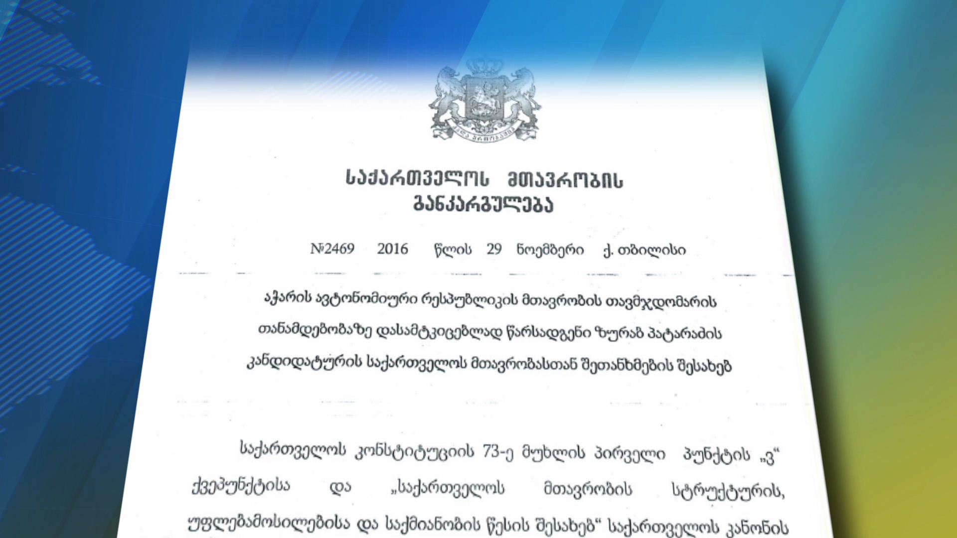 გიორგი კვირიკაშვილმა პრეზიდენტის განკარგულებას, რომლის მიხედვითაც აჭარის მთავრობის თავმჯდომარის პოსტზე ისევ ზურაბ პატარაძე განიხილება ხელი მოაწერა.