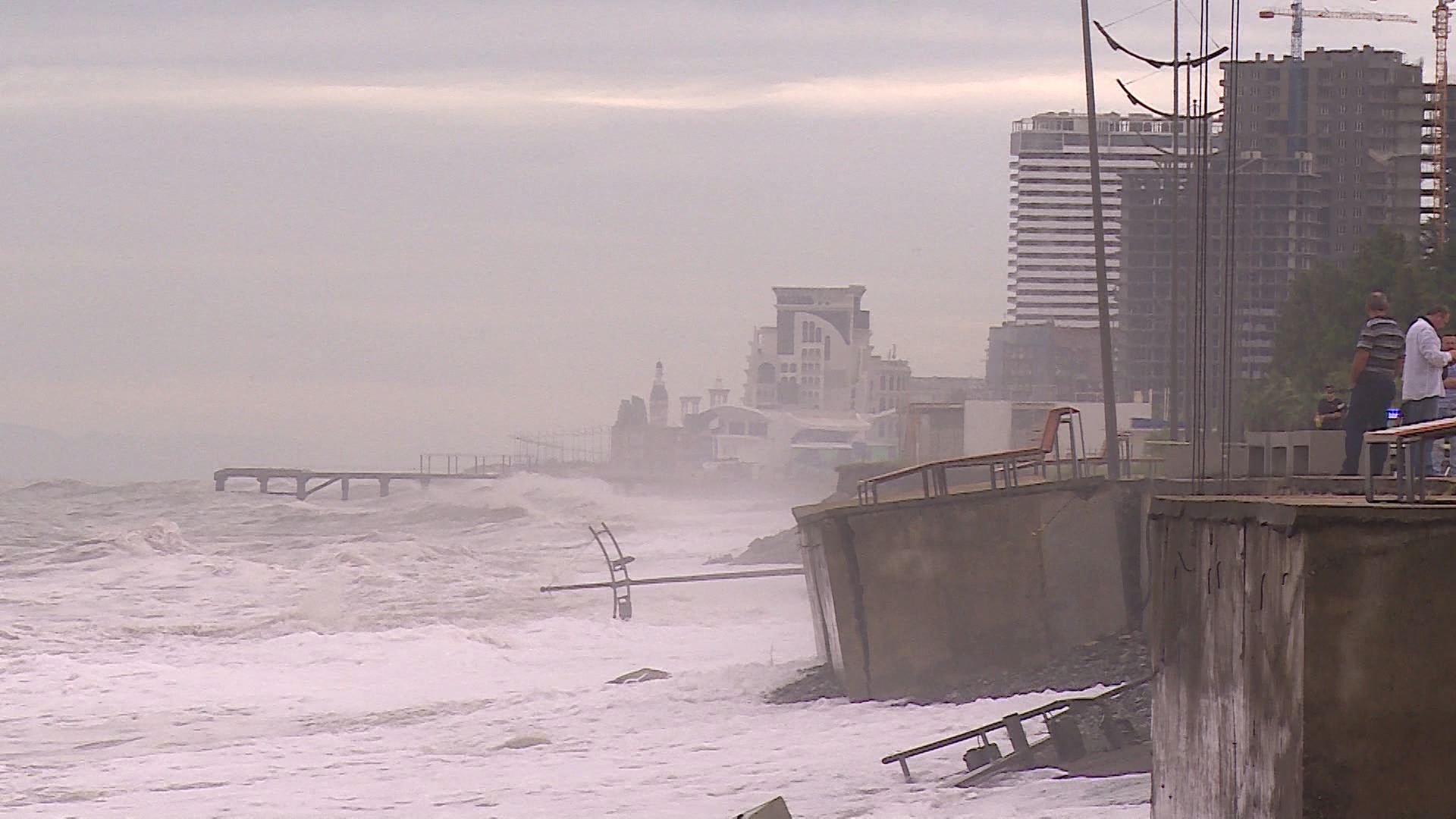 ბათუმში ზღვაზე ბანაობა ისევ აკრძალულია. სანაპიროებზე წითელი ალმებია აღმართული. შტორმმა ბათუმის ახალ ბულვარში ინფრასტრუქტურა დააზიანა, გუშინდელი ძლიერი წვიმის შედეგად დაიტბორა...
