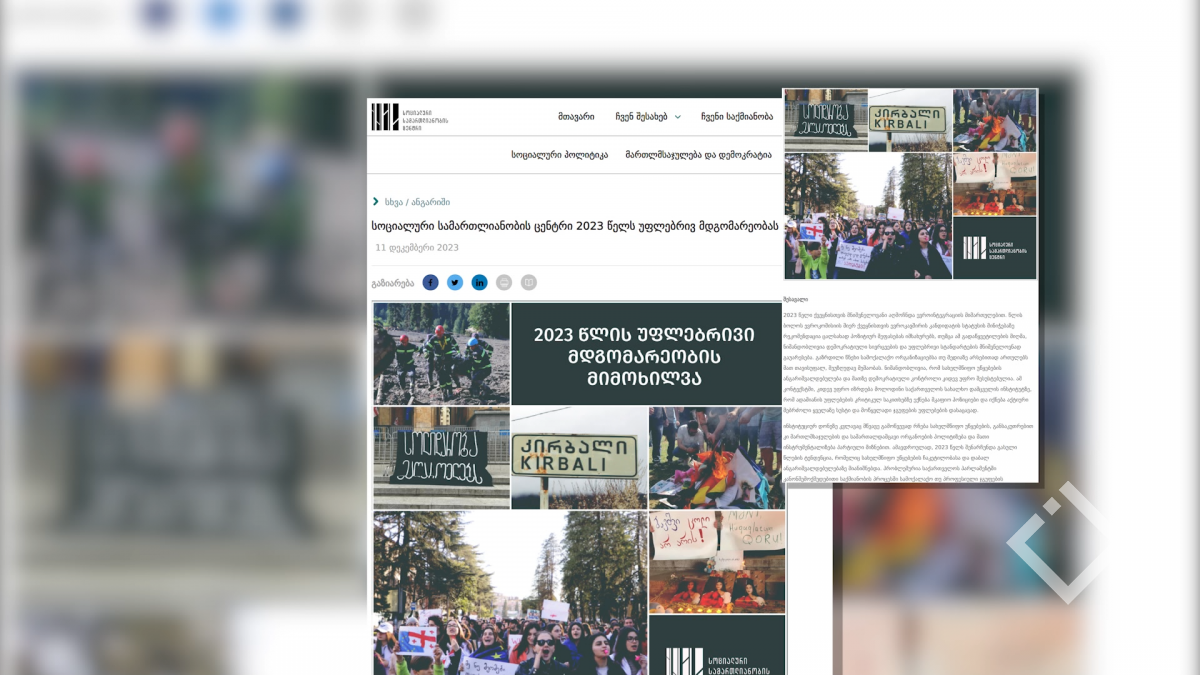 სოციალური სამართლიანობის ცენტრი 2023 წელს უფლებრივ მდგომარეობას აფასებს. ძირითად გამოწვევებს შორის დასახელებულია მართლმსაჯულებისა და სამართალდამცავი ორგანოების პოლიტიზება, სახელმწიფო უწყებების ჩაკეტილობა...