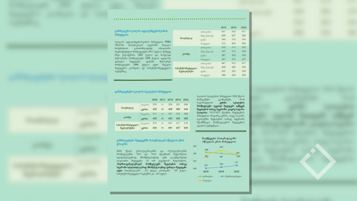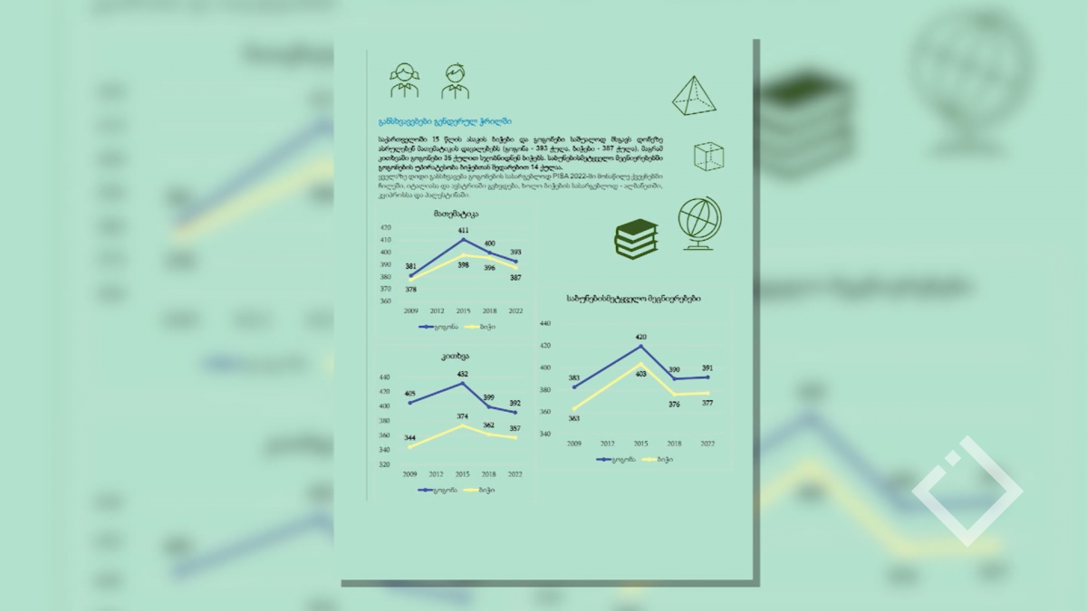 მოსწავლეთა შეფასების საერთაშორისო პროგრამის პისა 2022 წლის მონაცემებით, საქართველო წაკითხულის გააზრების კუთხით 81 ქვეყანას შორის არის 67-ე ადგილზე. ამავე კვლევით...