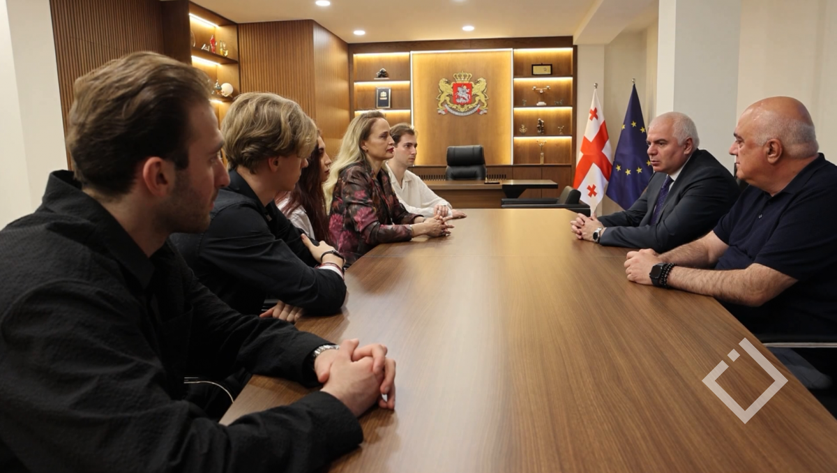 საქართველოს სპორტის მინისტრი შალვა გოგოლაძე ფიგურულ მოციგურავეთა ნაკრების წევრებს - ნიკა ეგაძეს, ლუკა ბერულავას, დიანა დევისსა და გლებ სმოლკინს -...