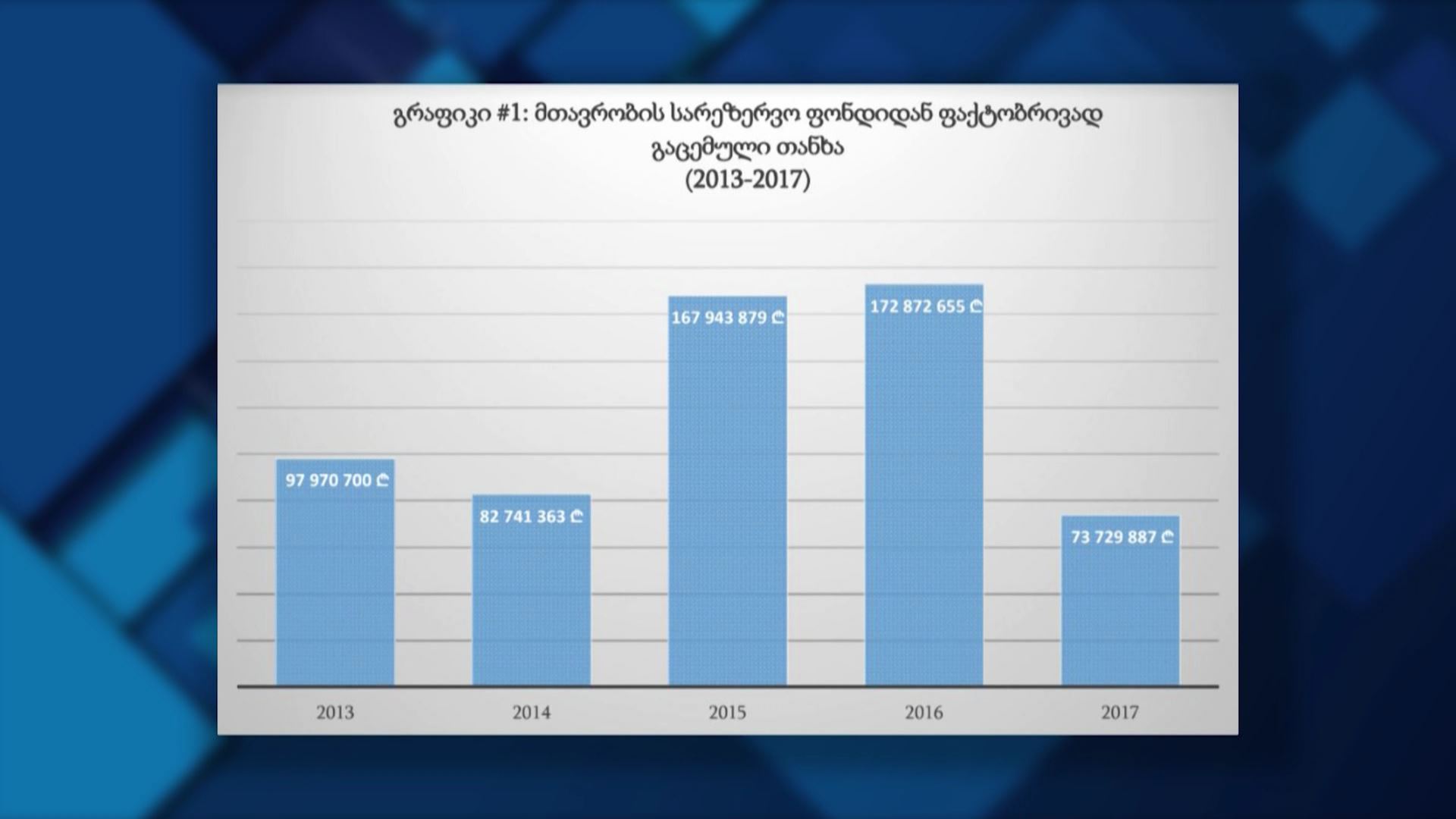 საქართველოს მთავრობის სარეზერვო ფონდიდან გასულ 5 წელიწადში ღონისძიებებზე იმდენივე თანხა დაიხარჯა, რამდენიც ფორს-მაჟორული, ან გაუთვალისწინებელი შემთხვევებისთვის - მთავრობის სარეზერვო ფონდიდან...