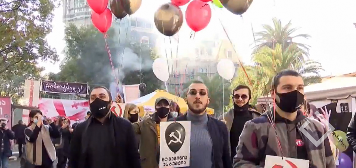 უსკოს შემაჯამებელი ოქმი აქტივისტებმა ბუშტებზე დაამაგრეს და ჰაერში გაუშვეს