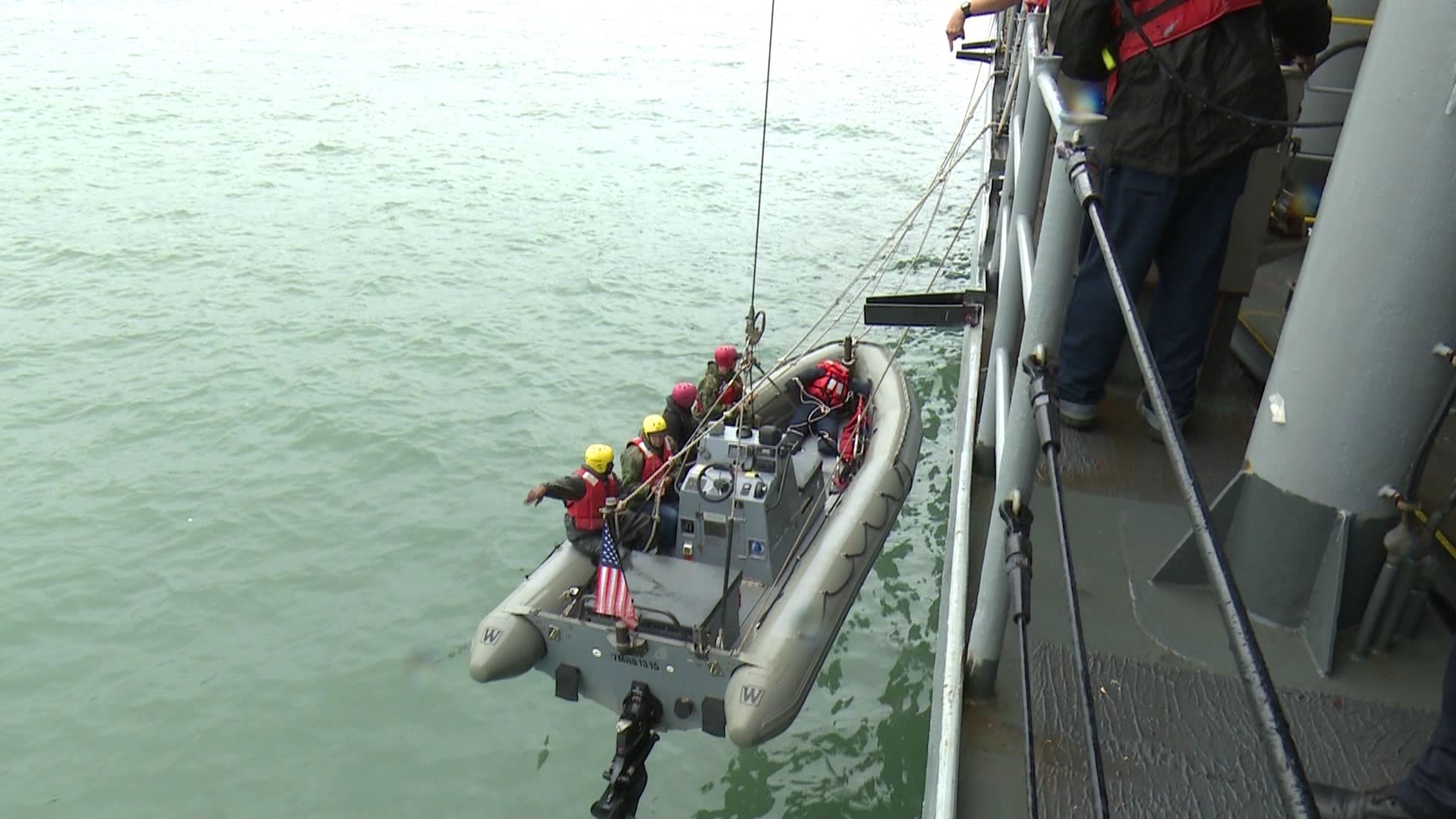 ''ადამიანი ბორტს მიღმა'' ძებნა-გადარჩენის პირველი ერთობლივი სწავლება ამერიკელი და ქართველი სამხედროებისთვის. შავ ზღვაში იმიტირებული საწრთვნელი ოპერაცია 5 საათს გაგრძელდა.