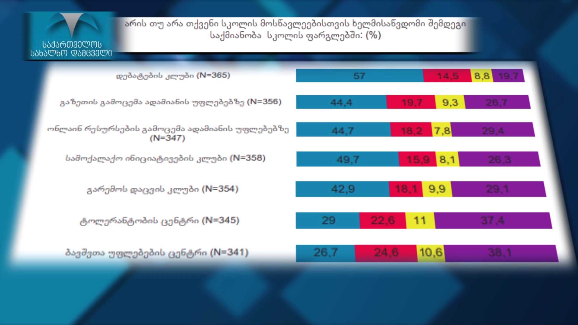მოსწავლეთა 32 პროცენტს ფიზიკური ჩაგვრის შესახებ სმენია, ან უნახავს, 40 პროცენტი კი სიტყვიერი ჩაგვრის შემთხვევებზე საუბრობს – ეს მონაცემი ბოლო...