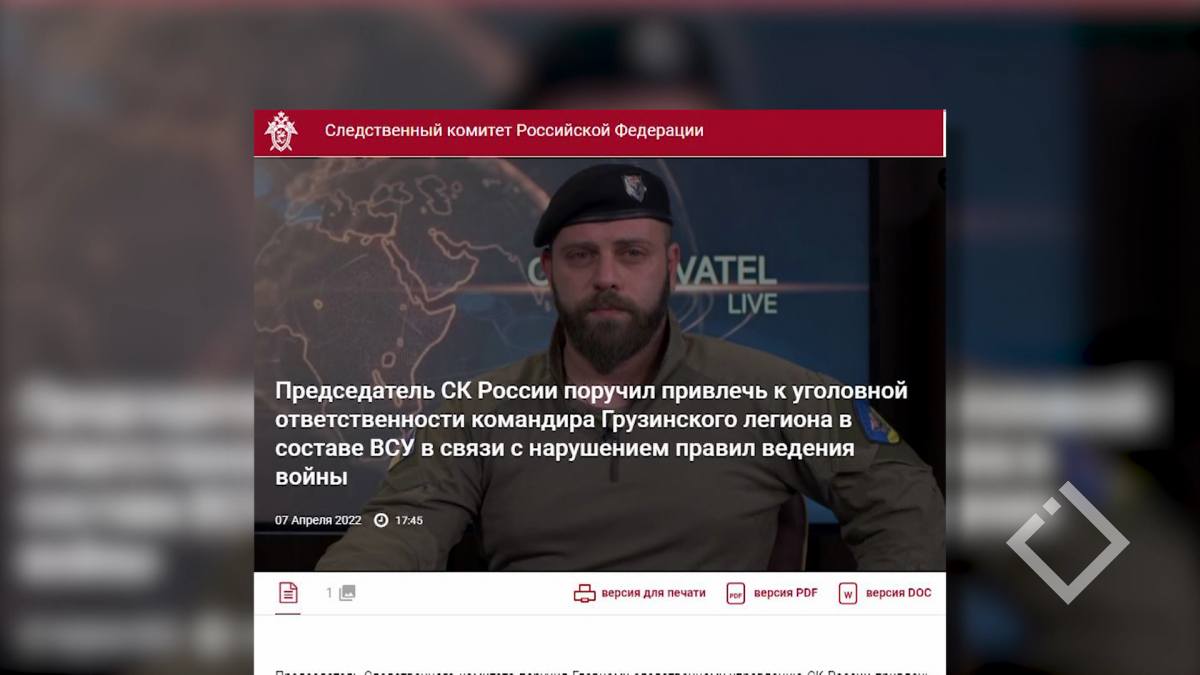 რუსეთის ფედერაციის საგამოძიებო კომიტეტის მიერ ქართული ლეგიონის მეთაურის მამუკა მამულაშვილის წინააღმდეგ დაწყებული გამოძიება, თავად ლეგიონერის შეფასებით, რუსეთის მიერ არის აღიარება,...