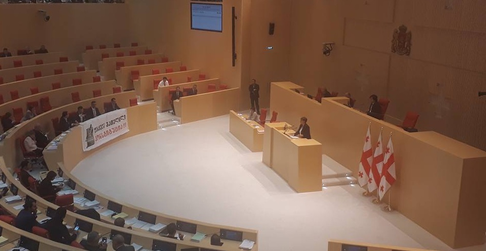 ‘’ფეხქვეშ გათელილი კონსტიტუცია’’- ამ სახელწოდების ბანერი „ევროპული საქართველოს’’ წევრებმა პარლამენტის სხდომათა დარბაზში გადმოფინეს. ისინი აღნიშნული ფორმით, საკონსტიტუციო ცვლილებებს აპროტესტებენ. რამდენიმე...