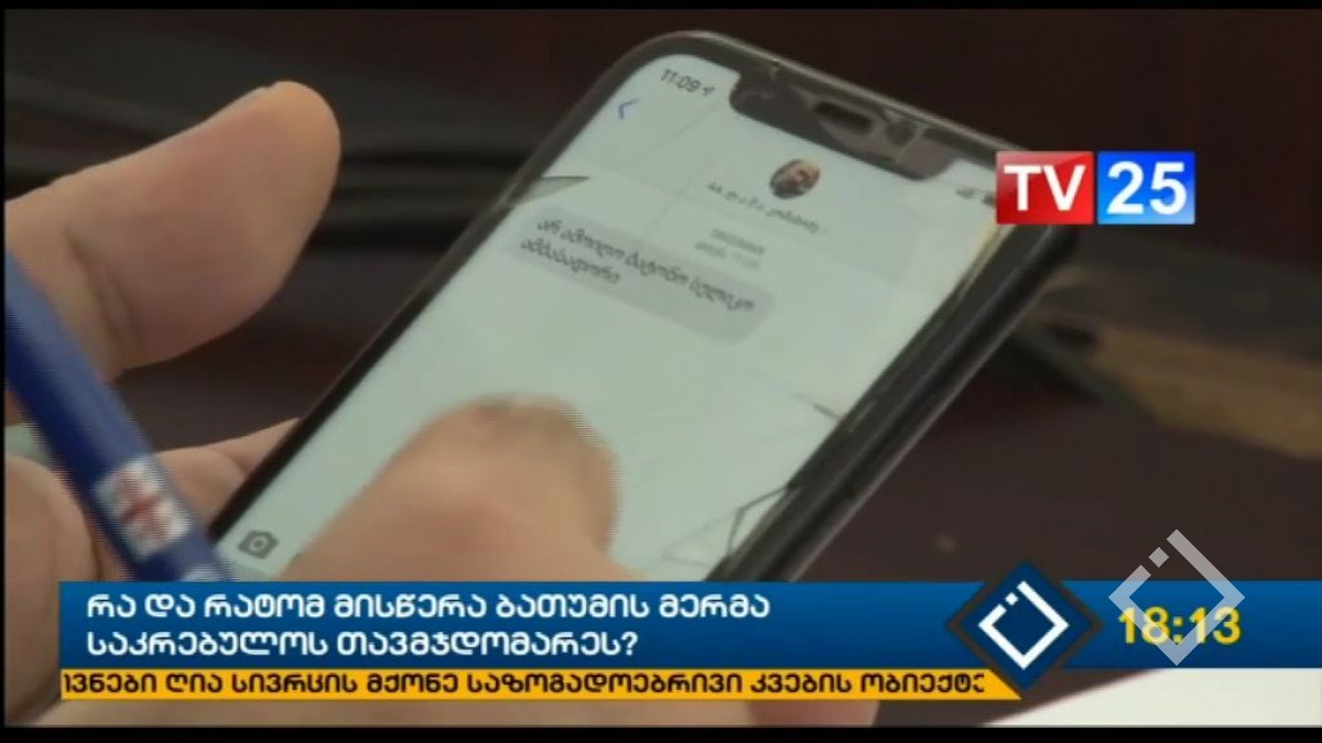 „არ ამოიღო ამბასადორი“ - ბათუმის მერის მიერ საკრებულოს თავმჯდომარისთვის გაგზავნილი ესემესი სკანდალური აღმოჩნდა. ექსკლუზივი ტევე 25-ს ეკუთვნის, რომლის ოპერატორმაც მიმოწერის...