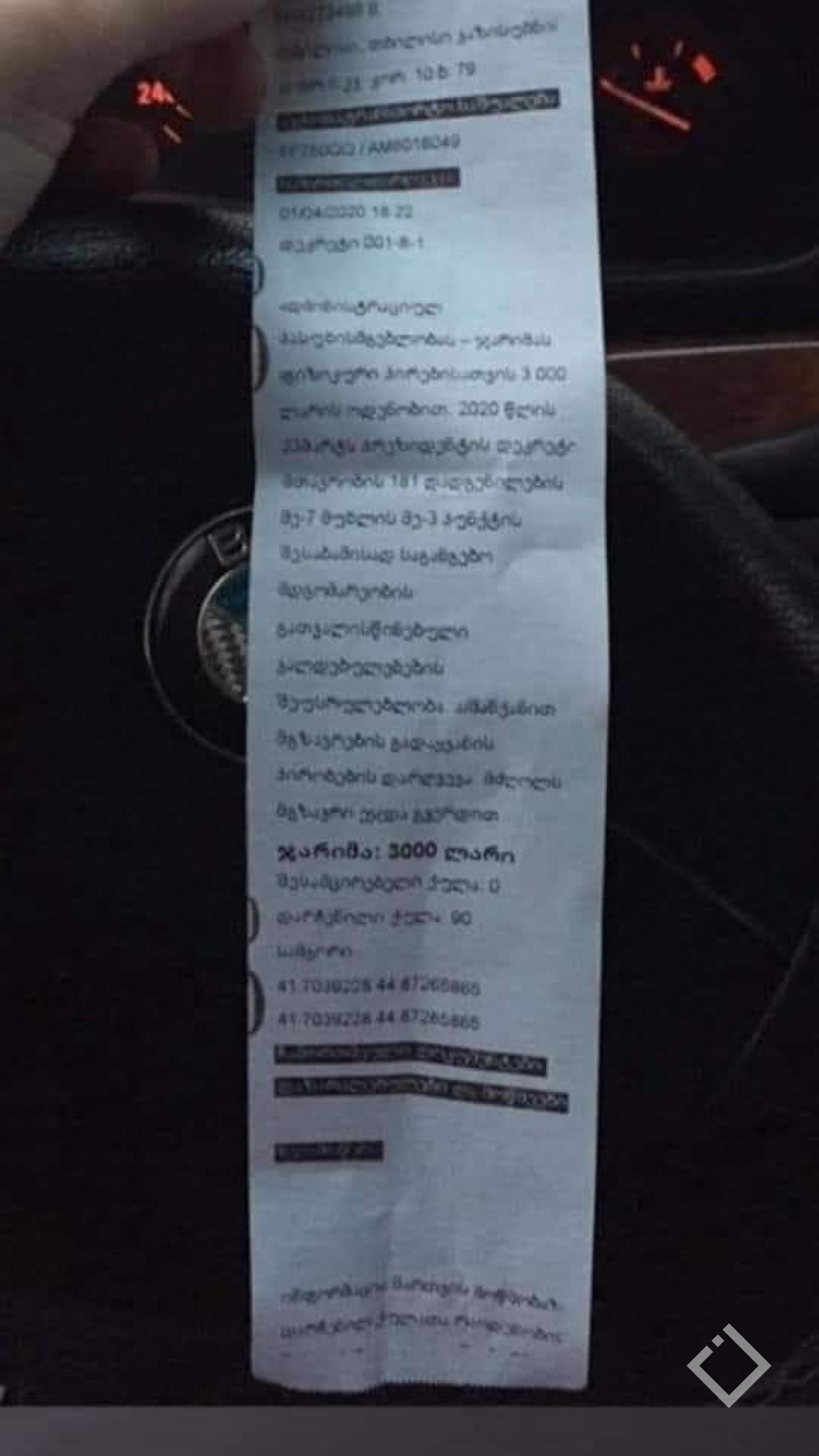 თბილისში, 1 აპრილს, პოლიციამ მოქალაქე საგანგებო რეჟიმის დარღვევის გამო დააჯარიმა. მოქალაქე ავტომანქანით საღამოს გადაადგილდებოდა, გვერდით კი დედა ეჯდა. საგანგებო რეჟიმის დროს...