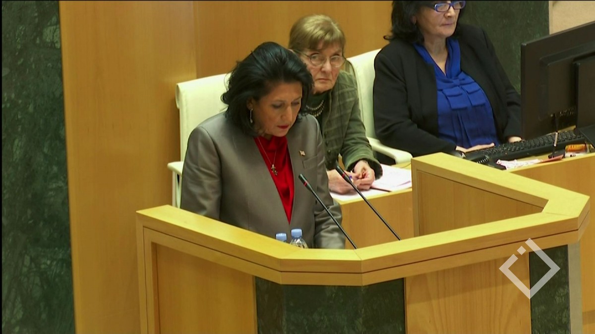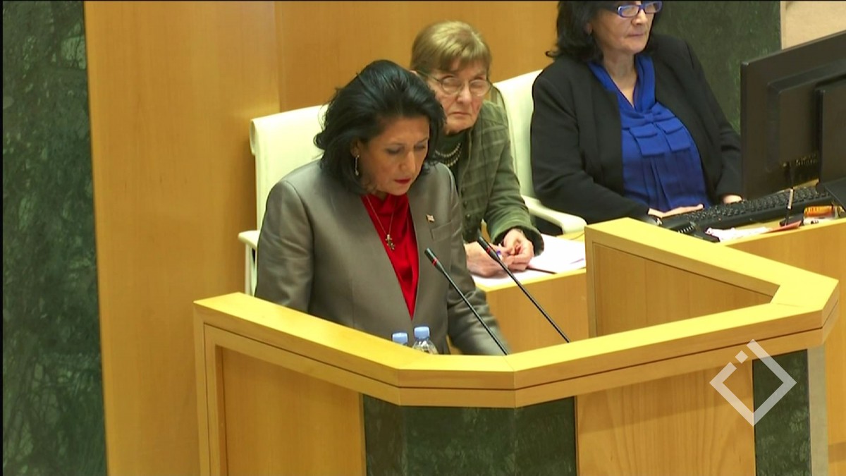 ბოიკოტისა და აქციის ფონზე ჩაბარებული ანგარიში, თავის გამოსვლაში სალომე ზურაბიშვილი შეეხო სასამართლოს რეფორმის, რუსეთის მხრიდან, ოკუპაციის,ადამიანის უფლებების და მედიის თავისუფლების...