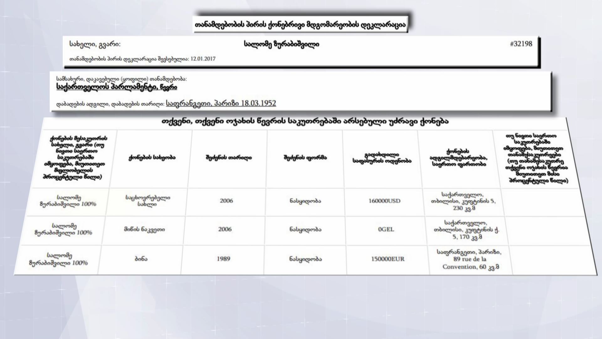 რა ქონებას ფლობენ საპრეზიდენტო კანდიდატები? როგორც ირკვევა, უძრავ ქონებასთან ერთად, აქვთ თანხა საბანკო ანგარიშებზე. მაგალითად სალომე ზურაბიშვილს აქვს დანაზოგიც და...