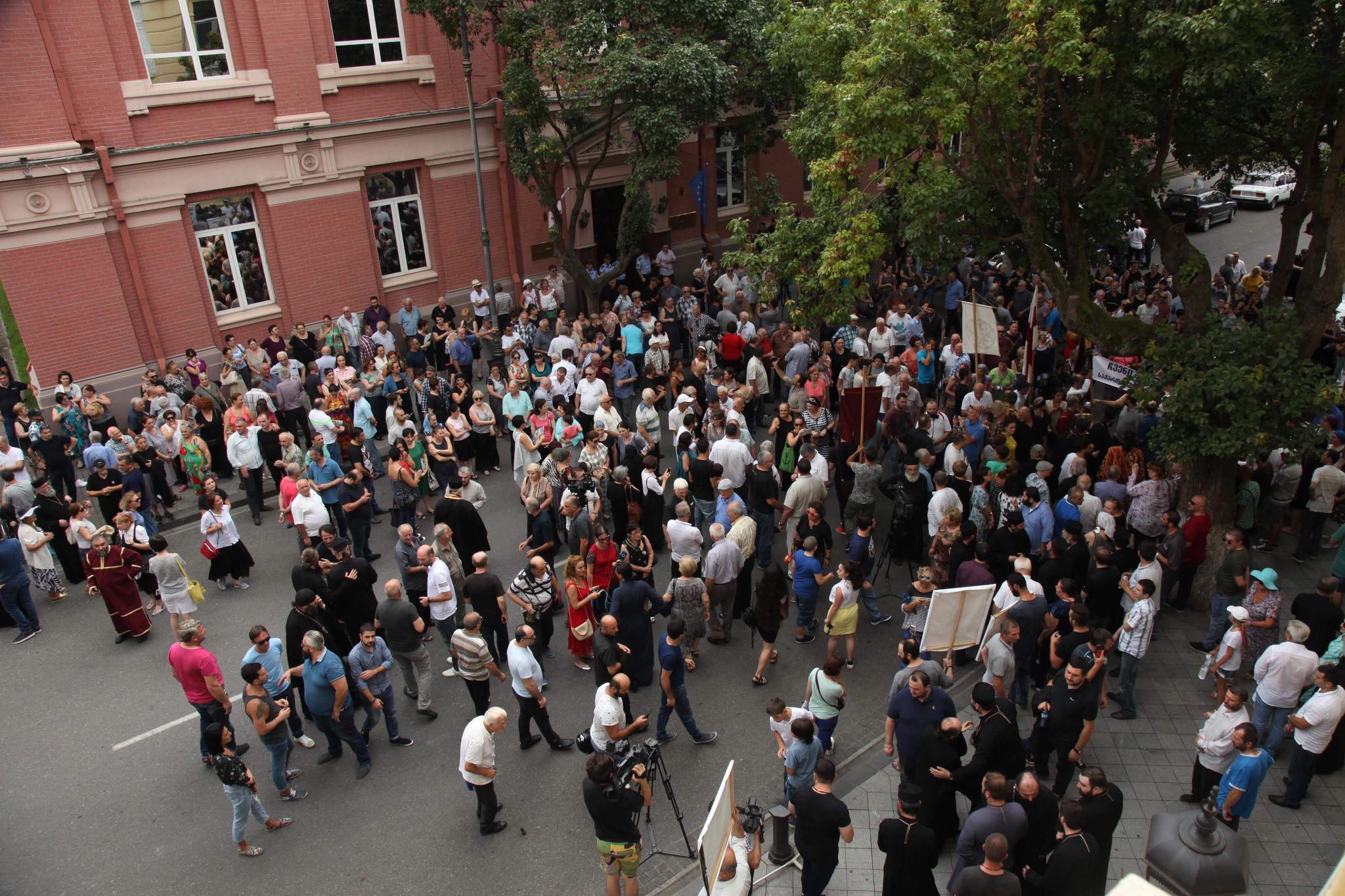 ''მოვუაროთ ერს ფხიზელი გონებით'' - საკონსტიტუციოს წინ სასულიერო პირები და მრევლის ნაწილია შეკრებილი