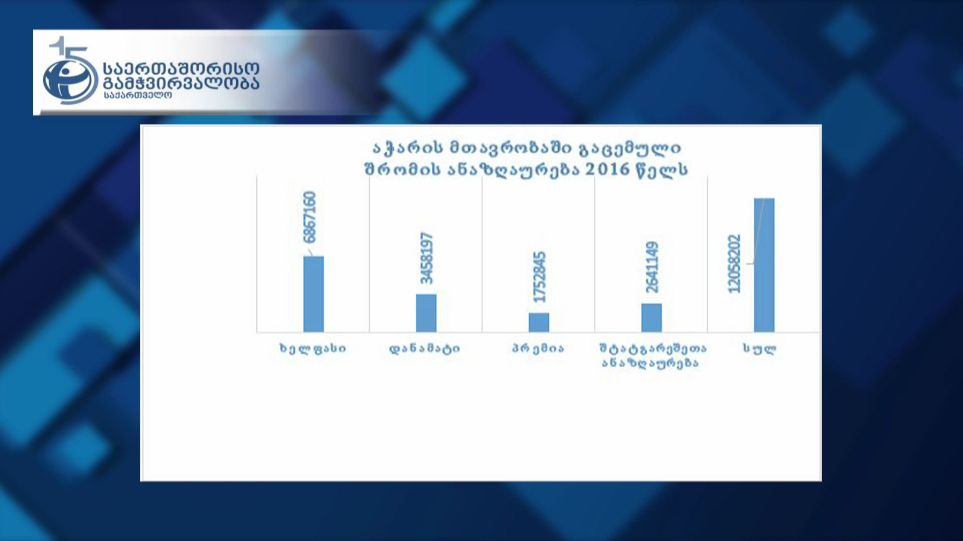 აჭარის მთავრობის აპარატსა და სამინისტროებში, 2016 წელს თანამდებობრივმა სარგომ, პრემიებმა, დანამატებმა და საწვავისა და მივლინების ხარჯმა 15 მილიონ 407 ათასი...