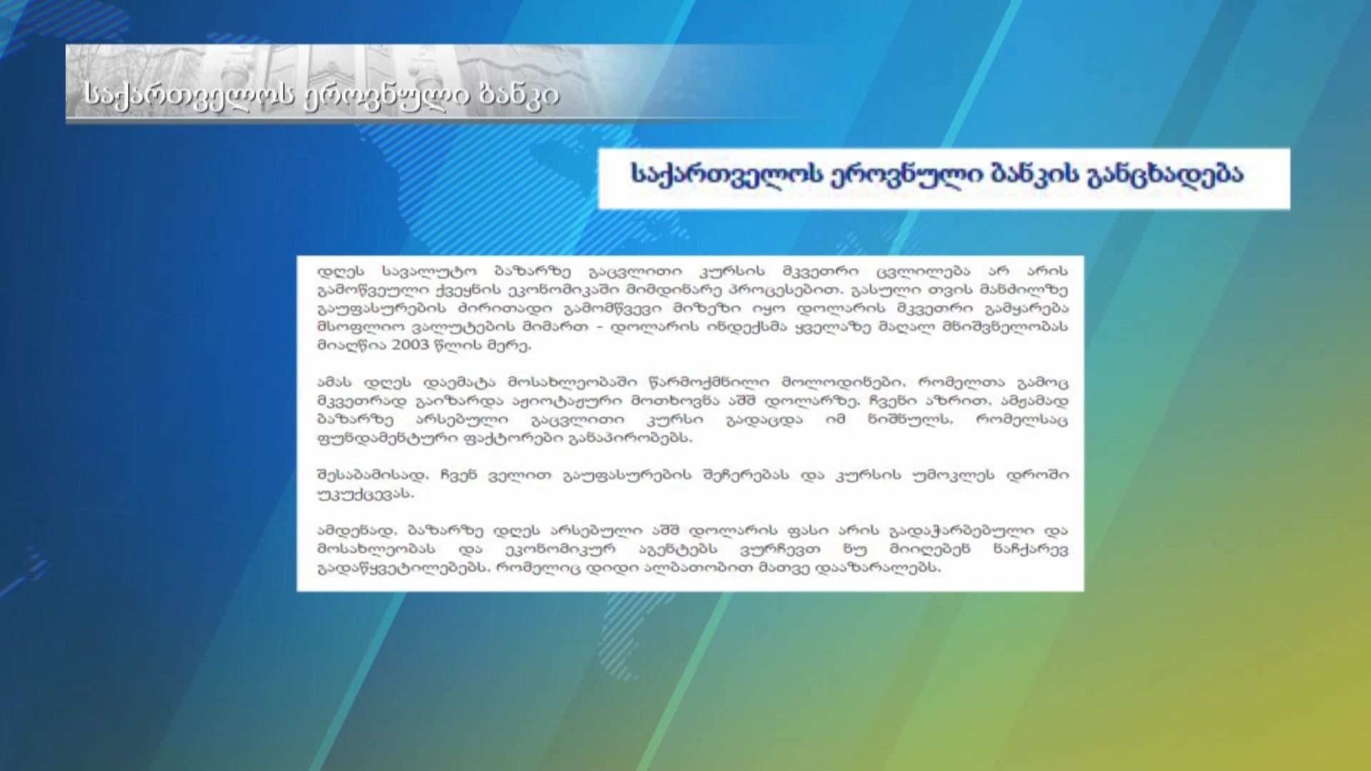 ლარის კურსის შემაშფოთებელი მაჩვენებელი დოლართან მიმართებაში. ეროვნული ბანკის ოფიციალური კურსის თანახმად, ერთი ამერიკული დოლარის ოფიციალური ღირებულება 2.58 ლარი გახდა. დღის...