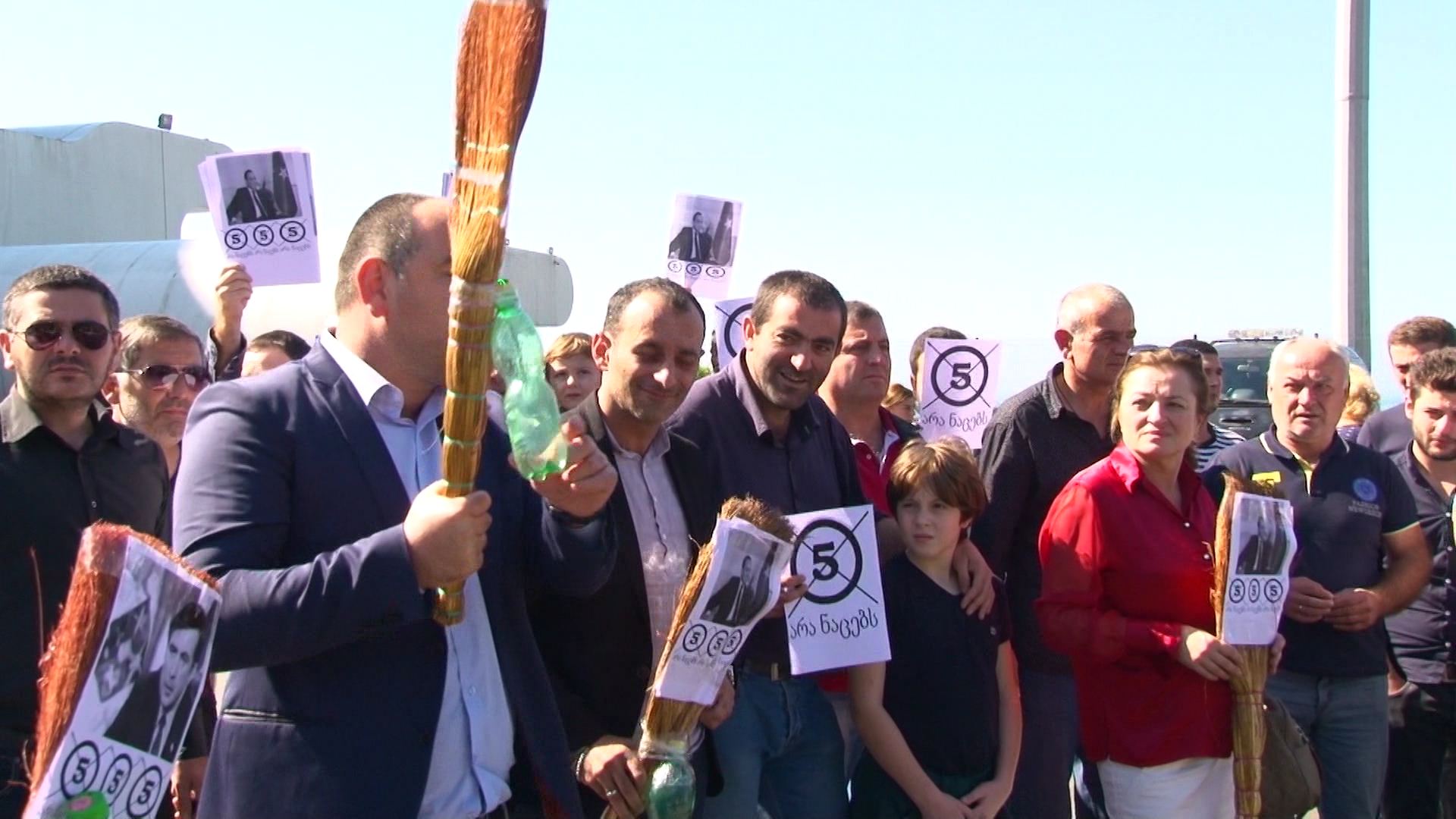 "თოფაძე მრეწველები - ჩვენი სამშობლოს" მაჟორიტარი დეპუტატობის კანდიდატმა არასამთავრობო ორგანიზაციების წარმომადგენლებთან ერთად დღეს სარფში საქართველოში მიხეილ სააკაშვილის შესაძლო დაბრუნება გააპროტესტეს.