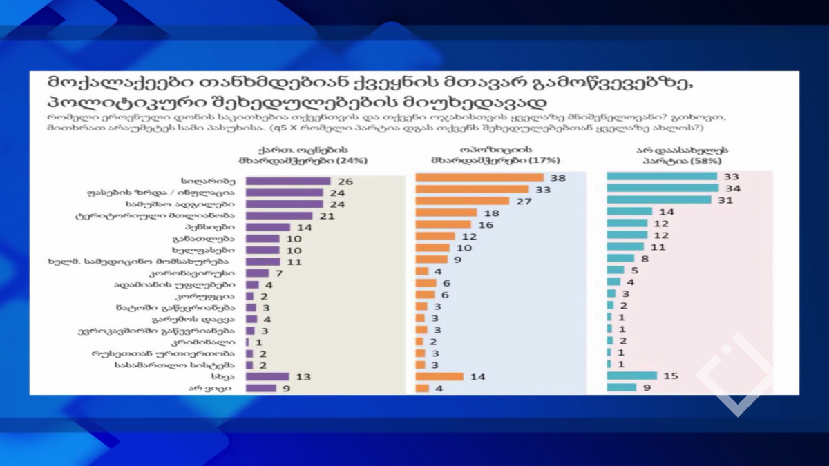 ენდიაის ახალი კვლევა კვლავ განხილვის საგანი გახდა. როგორც აღმოჩნდა გამოკითხულთა უმრავლესობისთვის მთავარი პრობლემები, სიღარიბე, უმუშევრობა და ინფლაციაა და აქედან გამომდინარე...