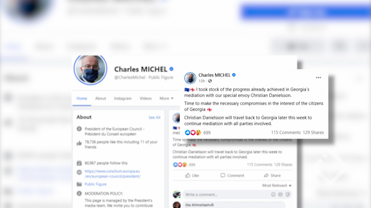ევროპული საბჭოს პრეზიდენტთან საქართველოში გამართული მედიაციის პროცესი შეჯამებულია და კრისტიან დანიელსონი იმავე მისიით საქართველოში ბრუნდება. ამის შესახებ ამის შესახებ შარლ მიშელი „ტვიტერზე“ წერს,...