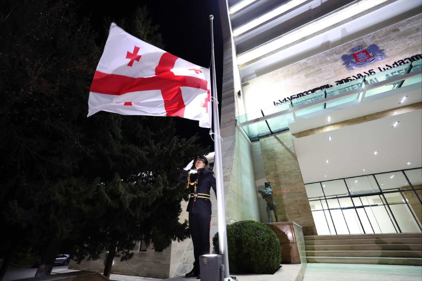 შინაგან საქმეთა სამინისტროს ადმინისტრაციულ შენობებზე სახელმწიფო დროშები დაეშვა