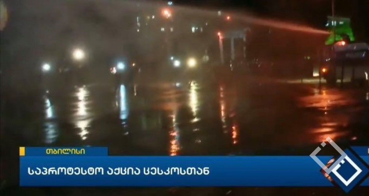 ცენტრალური საარჩევნო კომისიის მიმდებარე ტერიტორიაზე, აქციის მონაწილეების წინააღმდეგ წყლის ჭავლი გამოიყენეს. აქციის მონაწილეები კი, ცესკო-ს შესასვლელთან განლაგებულ სამართალდამცველებს ქვებს ესვრიან....