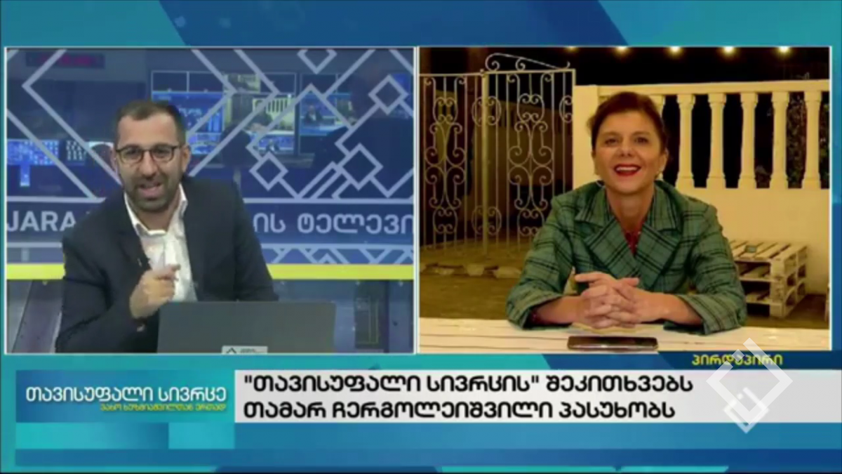 გადაცემა "თავისუფალი სივრცის" შეკითხვებს გიგა ბოკერიას საარჩევნო შტაბის წარმომადგენელი თამარ ჩერგოლეიშვილი პასუხობდა.