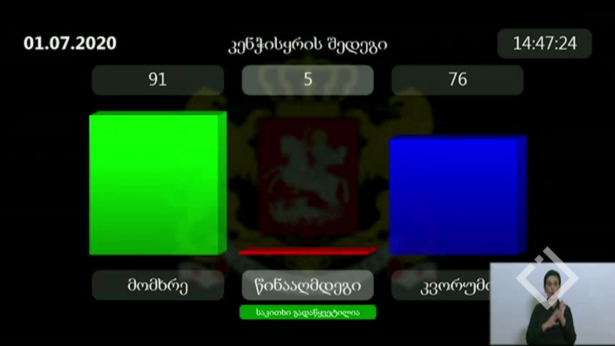 89 მომხრე არცერთი წინაამღდეგი. პარლამენტმა ახალი რეგლამენტი სამივე მოსმენით დაამტკიცა, რომელიც მეათე მოწვევის პარლამენტში ამოქმედდება. ახალი რეგლამენტის მიხედვით, იცვლება კომიტეტების...