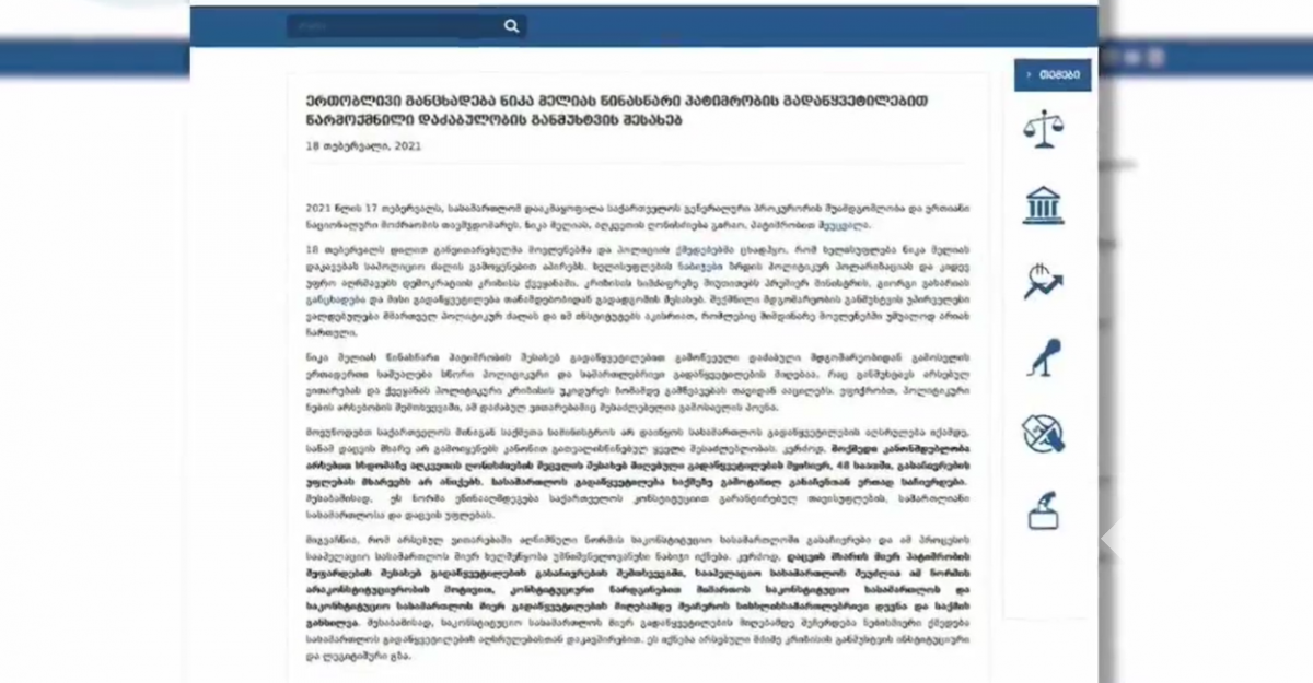 "ნაციონალური მოძრაობის" ოფისთან ნიკა მელიას ადვოკატი მივიდა. დიმიტრი საძაგლიშვილმა სთხოვა გამომძიებელს ვინაიდან ის წარმოადგენდა მელიას ინტერესებს სასამართლოში გადაცემოდა განჩინება, თუმცა...
