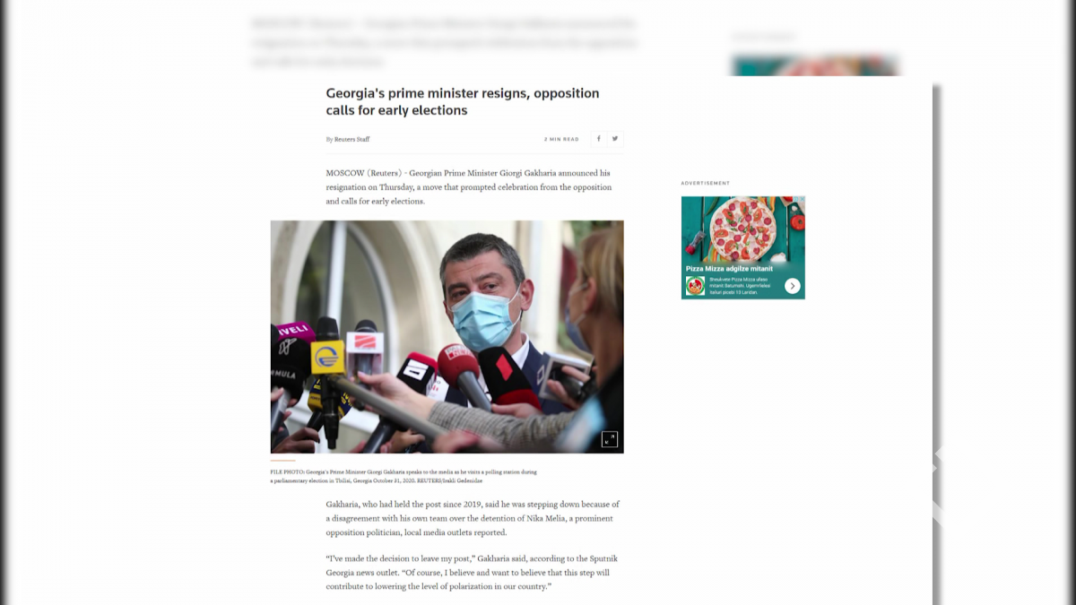 საქართველოს პრემიერ-მინისტრი გადადგა, ოპოზიცია ვადამდელი არჩევნებისკენ მოუწოდებს -ამ სათაურით სააგენტო როიტერი საქართველოში განვითარებულ მოვლენებს ეხმაურება. გახარიამ, რომელიც მთავრობის მეთაურის პოსტს...