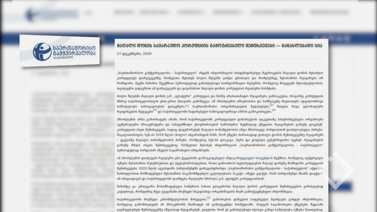 „საერთაშორისო გამჭვირვალობა“ ე.წ. ელიტური კორუფციის გამოუძიებელი შემთხვევების აღრიცხვას იწყებს. ორგანიზაციის განცხადებაში წერია, რომ საქართველოში კორუფციული დანაშაულის აღკვეთაზე პასუხისმგებელი ორგანოები (გენერალური...
