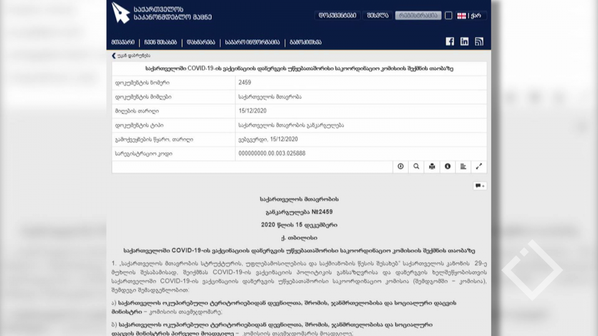 საქართველოში „კოვიდ-19“-ის ვაქცინაციის დანერგვის უწყებათაშორისი საკოორდინაციო კომისია იქმნება. მთავრობის შესაბამისი განკარგულება „საკანონმდებლო მაცნეზე“ უკვე გამოქვეყნდა. დადგენილების მიხედვით, კომისიის ამოცანაა „კოვიდ-19“-ის...