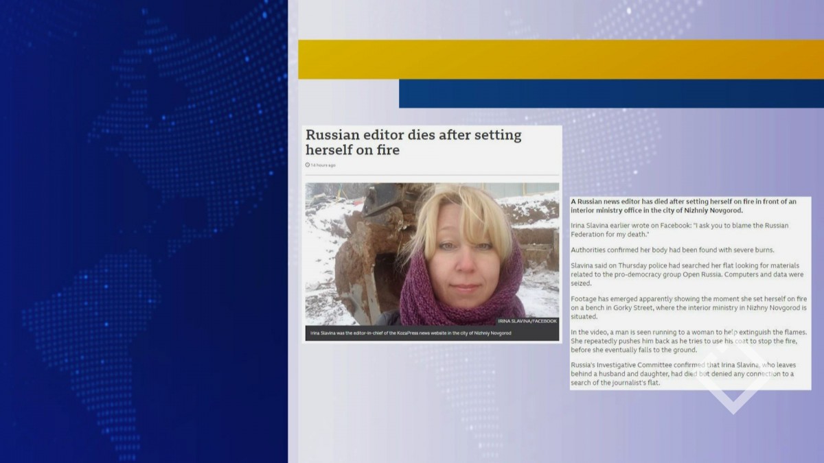 რუსული გამოცემა Kozapress -ის მთავარმა რედაქტორმა, 47 წლის ირინა სალვინამ ნიჟნი-ნოვგოროდში შინაგან საქმეთა სამინისტროს შენობის წინ თავი დაიწვა. მიღებული დაზიანებების...