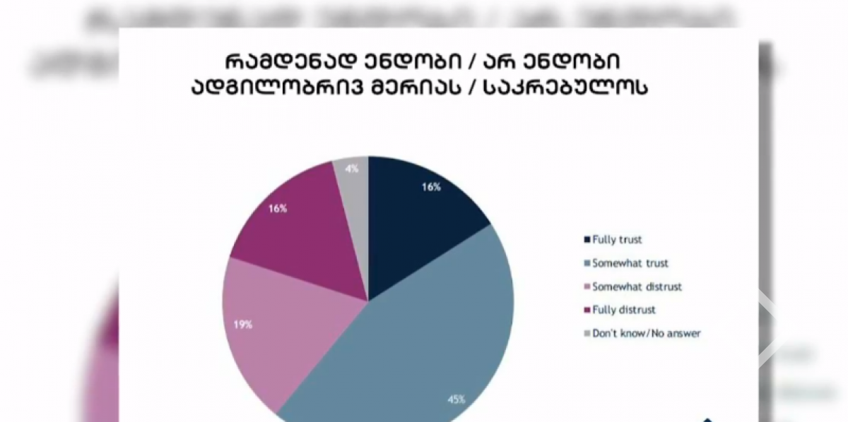 მიუხედავად პრობლემებისა, საერთაშორისო რესპუბლიკური ინსტიტუტის კვლევა, ადგილობრივი ხელისუფლებისადმი მოსახლეობის ნდობაზე პოზიტიურ მაჩვენებელს გვაძლევს. მთელი ქვეყნის მასშტაბით გამოკითხული რესპონდენტების პასუხების მიხედვით,...