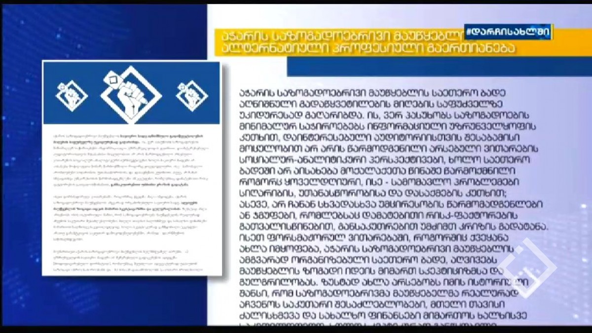 საზოგადოებრივი მაუწყებლის აჭარის ტელევიზიისა და რადიოს ალტერნატიული პროფკავშირი განცხადებას ავრცელებს