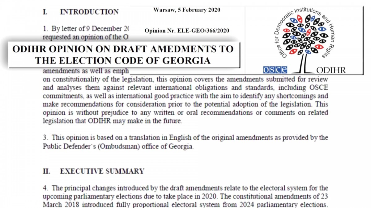 ეუთო/ოდირის დასკვნაშია აღნიშნულია, რომ საერთაშორისო სტანდარტები არ აწესებს საარჩევნო სისტემების არჩევას - იქნება ეს მაჟორიტარული, პროპორციული, ჰიბრიდული თუ ალტერნატიული, ფართო...