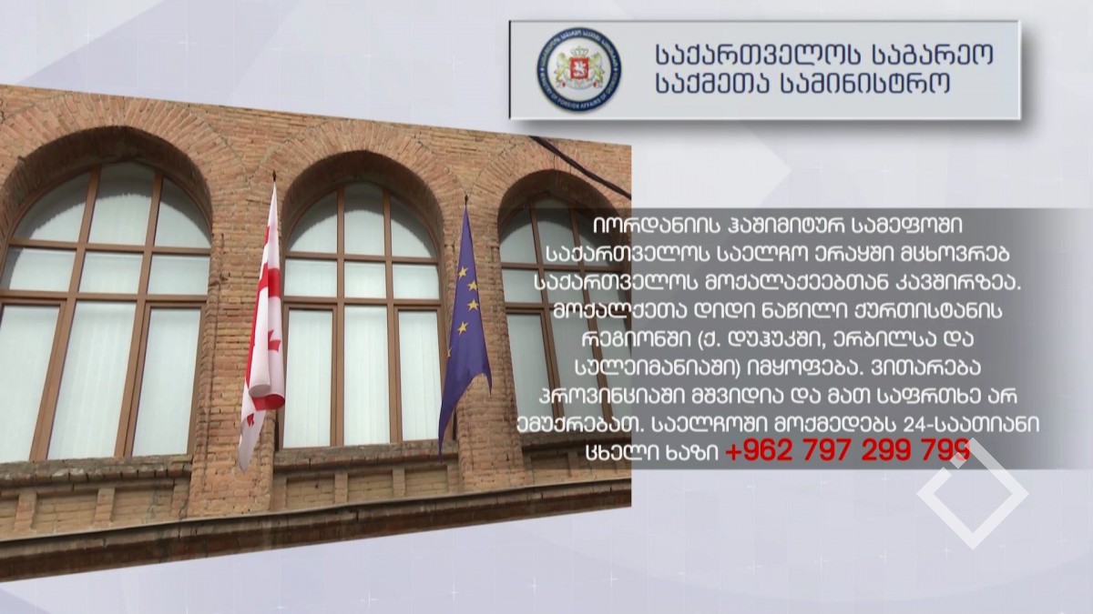 საქართველოს საელჩო იორდანიის ჰაშიმიტურ სამეფოში კავშირზეა ერაყში მცხოვრებ საქართველოს მოქალაქეებთან, რომელთა დიდი ნაწილიც კონცენტრირებულია ქურთისტანის რეგიონში. საგარეო საქმეთა სამინისტროს ინფორმაციით,...