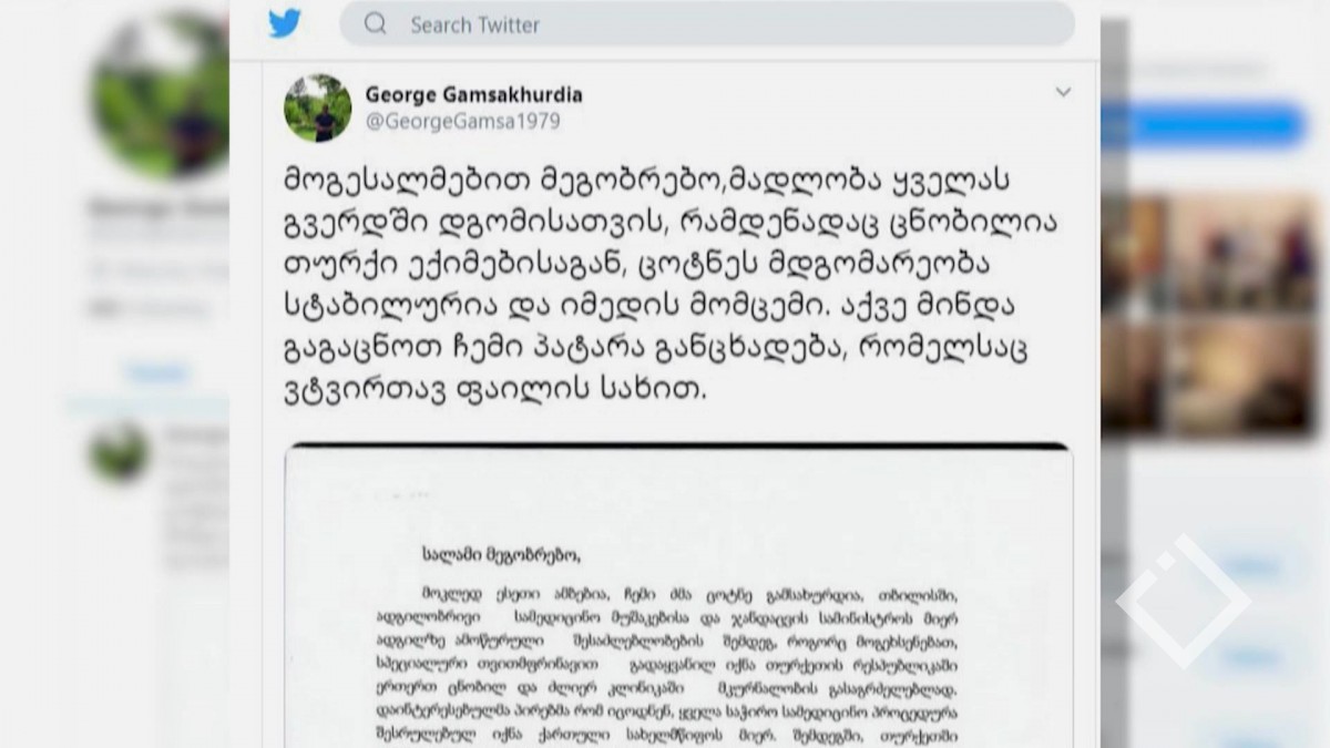 ცოტნე გამსახურდიას თურქეთში გამგზავრებისა და მკურნალობის ხარჯებთან დაკავშირებით, სოციალურ ქსელ "ტვიტერში" წერილს გამოაქვეყნა გიორგი გამსახურდიამ. მისი თქმით, ცოტნე გამსახურდიას ჯანმრთელობის...