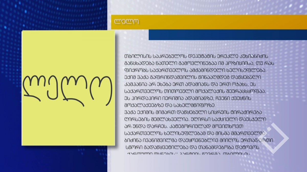 მოძრაობა „ლელო“ მოითხოვს, რომ თბილისის საკრებულოს დეპუტატმა ერეკლე კუხიანიძემ თანამდებობა დატოვოს და ვაჟა გაფრინდაშვილსა და მის ოჯახს საჯაროდ ბოდიში მოუხადოს....