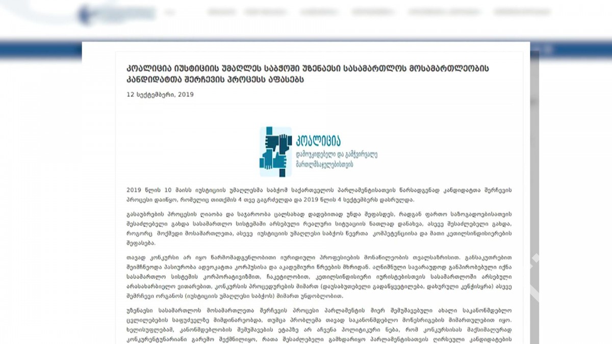 არასამთავრობო ორგანიზაცია საერთაშორისო გამჭვირვალობა საქართველო“ იუსტიციის უმაღლეს საბჭოში უზენაესი სასამართლოს მოსამართლეობის კანდიდატთა შერჩევის პროცესი შეაფასეს, განცხადებაში აღნიშნულია, რომ უზენაესი სასამართლოს...