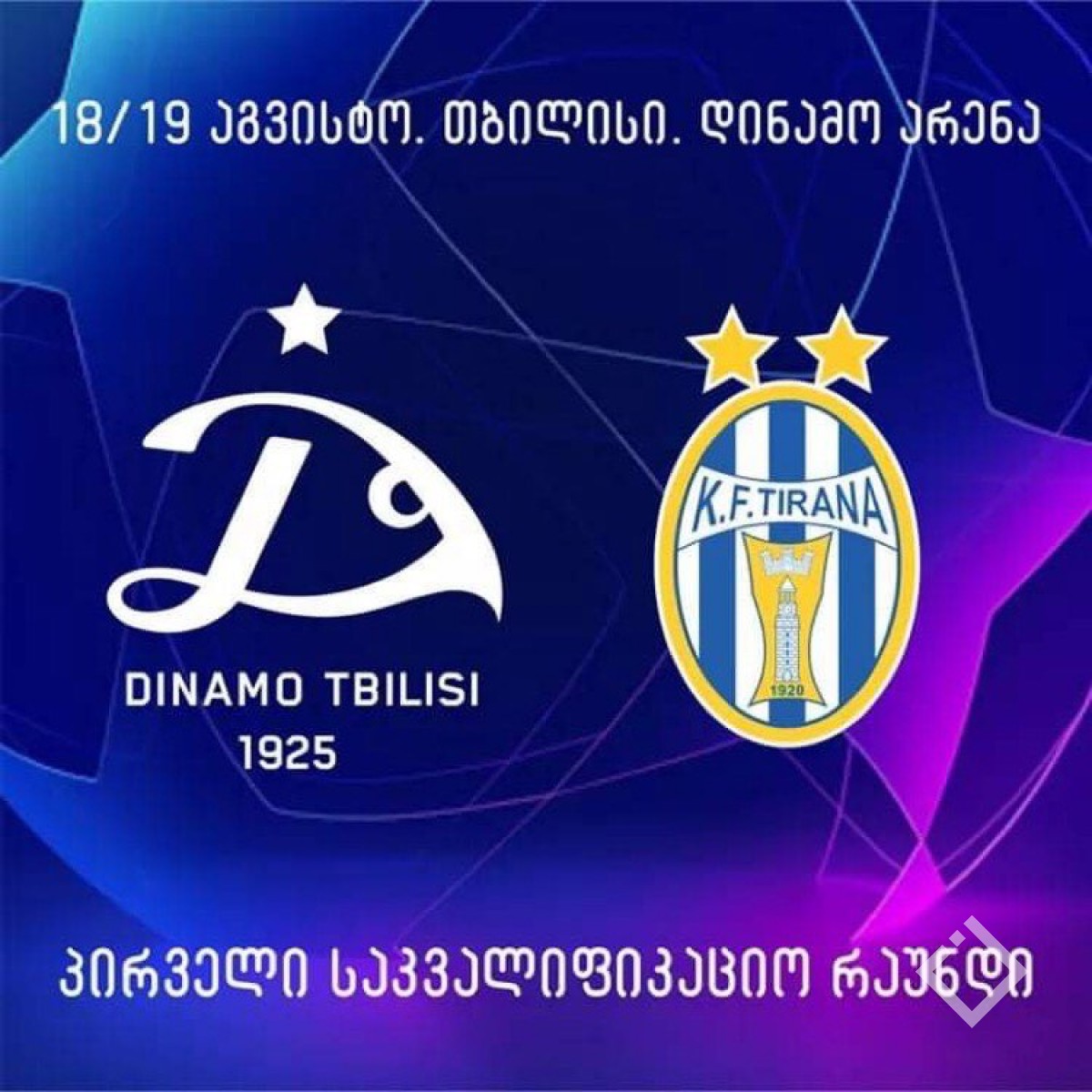 დინამო თბილისი ჩემპიონთა ლიგის პირველ საკვალიფიკაციო რაუნდში ალბანეთის ჩემპიონ ტირანას უმასპინძლებს. მატჩი 18 ან 19 აგვისტოს შედგება დინამო არენაზე, სამწუხაროდ...