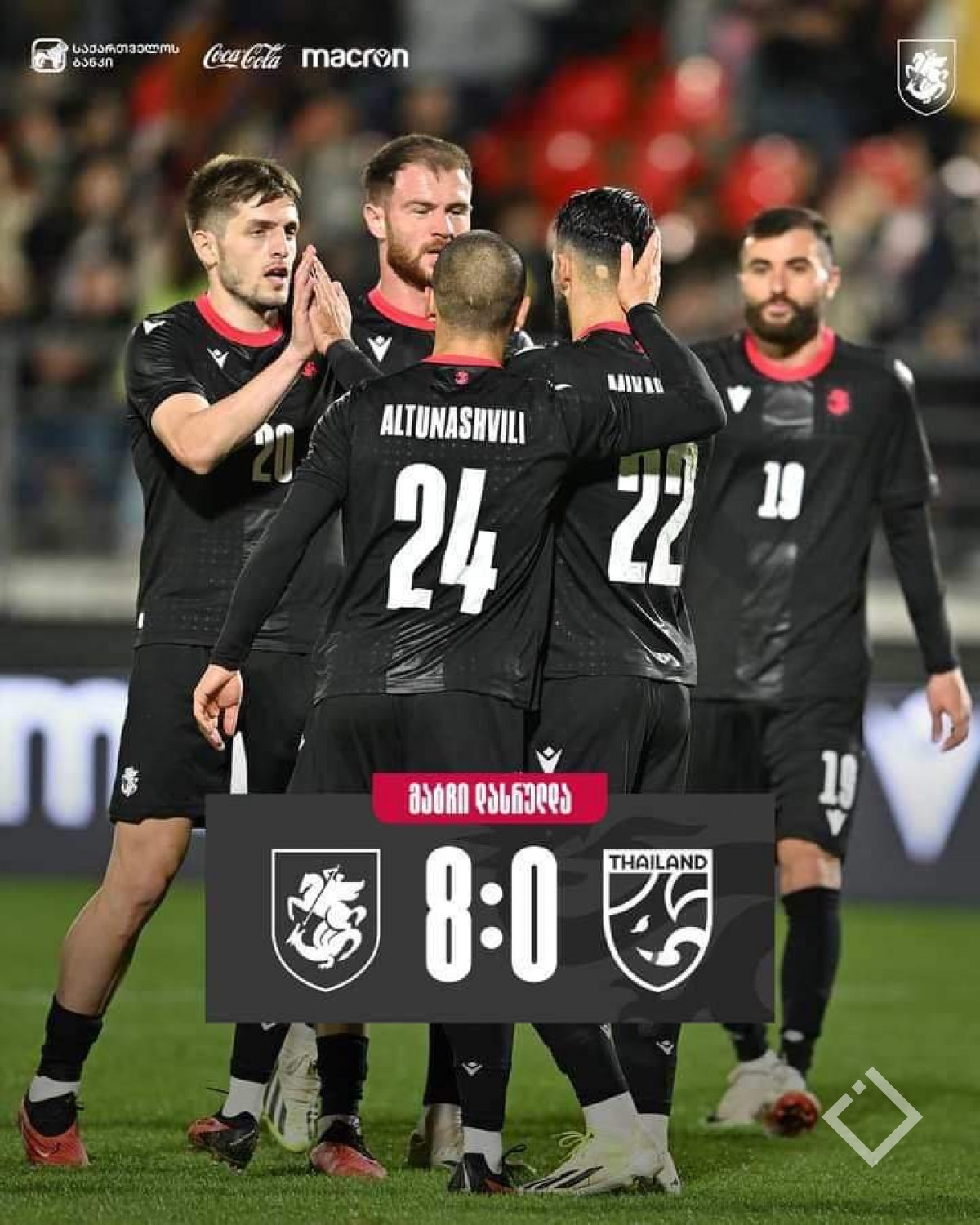 საქართველოს ეროვნულმა ნაკრებმა ამხანაგურ შეხვედრაში ტაილანდის ნაკრები დიდი ანგარიშით 8-0 დაამარცხა. საქართველოს ნაკრებიდან 4 გოლი მიქაუტაძის ანგარიშზეა, 2 გოლი დავითაშვილმა გაიტანა,...