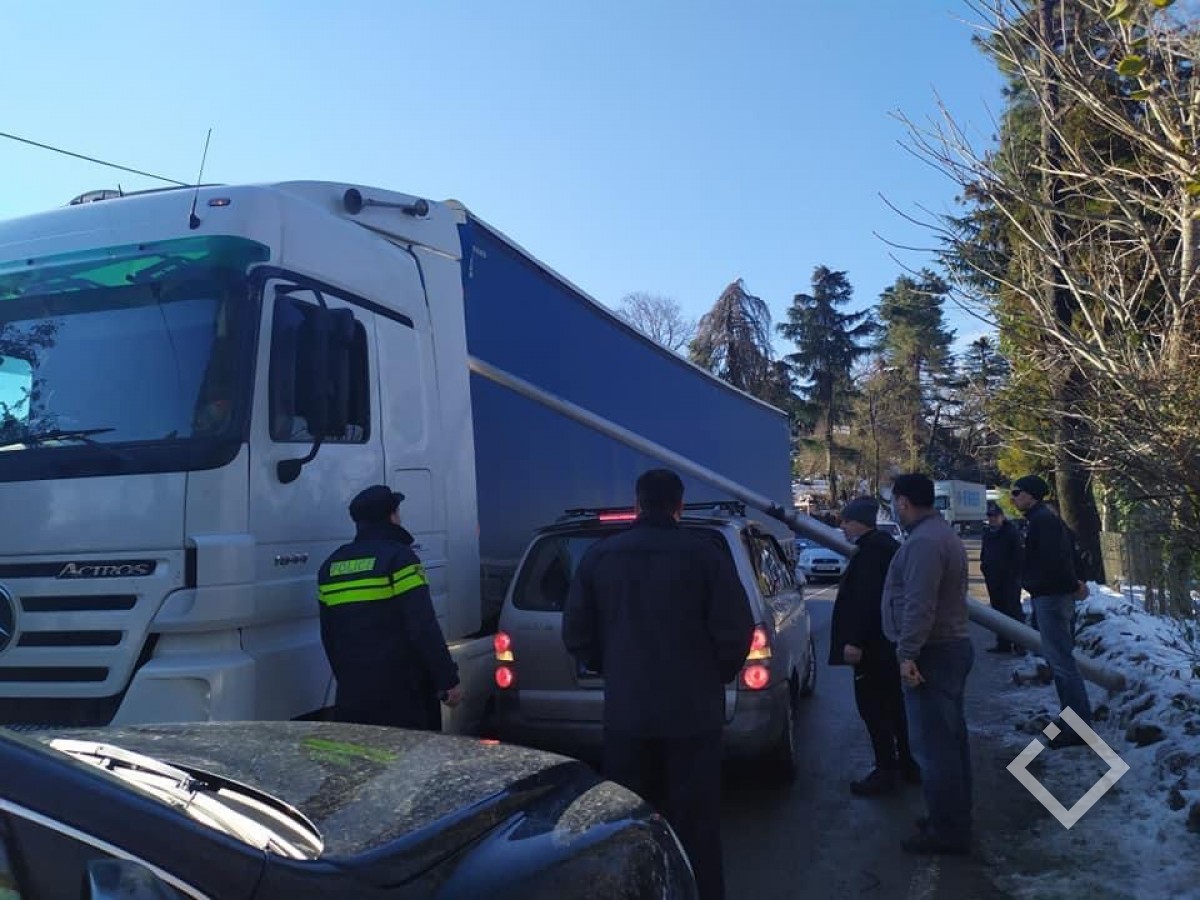 ციხისძირში, გარე განათების ბოძი წაიქცა და სატვირთო ავტომობილს დაეცა