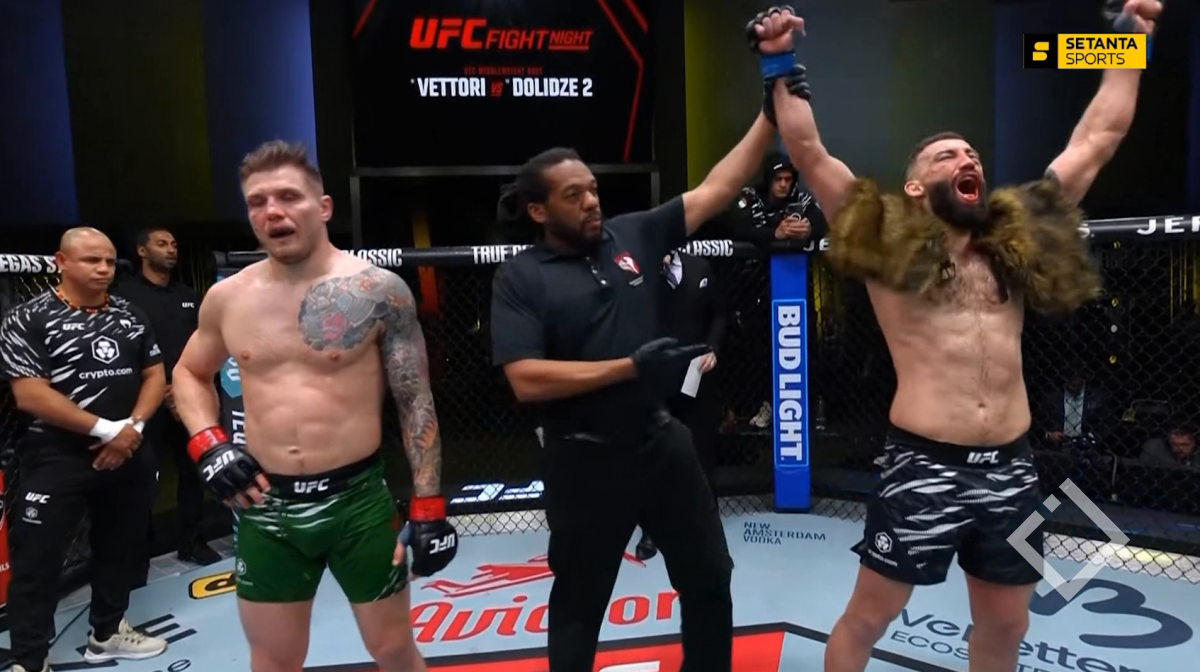 UFC-ის საშუალო წონის ქართველმა მებრძოლმა, რომან დოლიძემ იტალიელი მარვინ ვეტორი დაამარცხა. ხუთრაუნდიან ბრძოლაში 36 წლის მებრძოლმა მეტოქეს მსაჯთა ერთსულოვანი გადაწყვეტილებით...